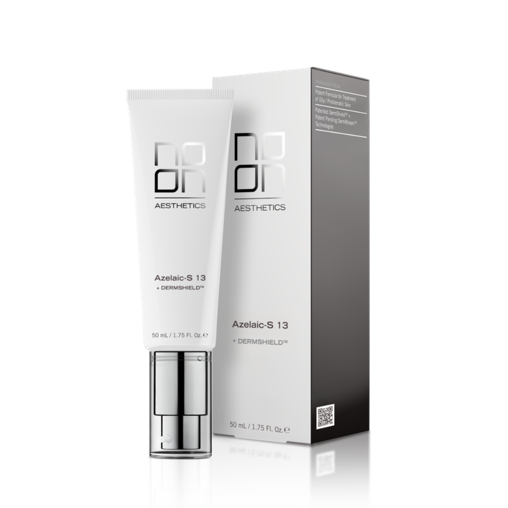 For skin prone to breakouts and inflammatory hyperpigmentation, Azelaic-S may be the ultimate game-changer. The secret: a well-known and proven ingredient now has a patent-pending, novel delivery system. This unique ability to make azelaic acid bio-available to the skin, combined with NOON’s patented DermShield™ technology, improves acne, rosacea and seborrhea without irritation. Azelaic-S fundamentally and forever changes treatment options for dark and sensitive skin.
